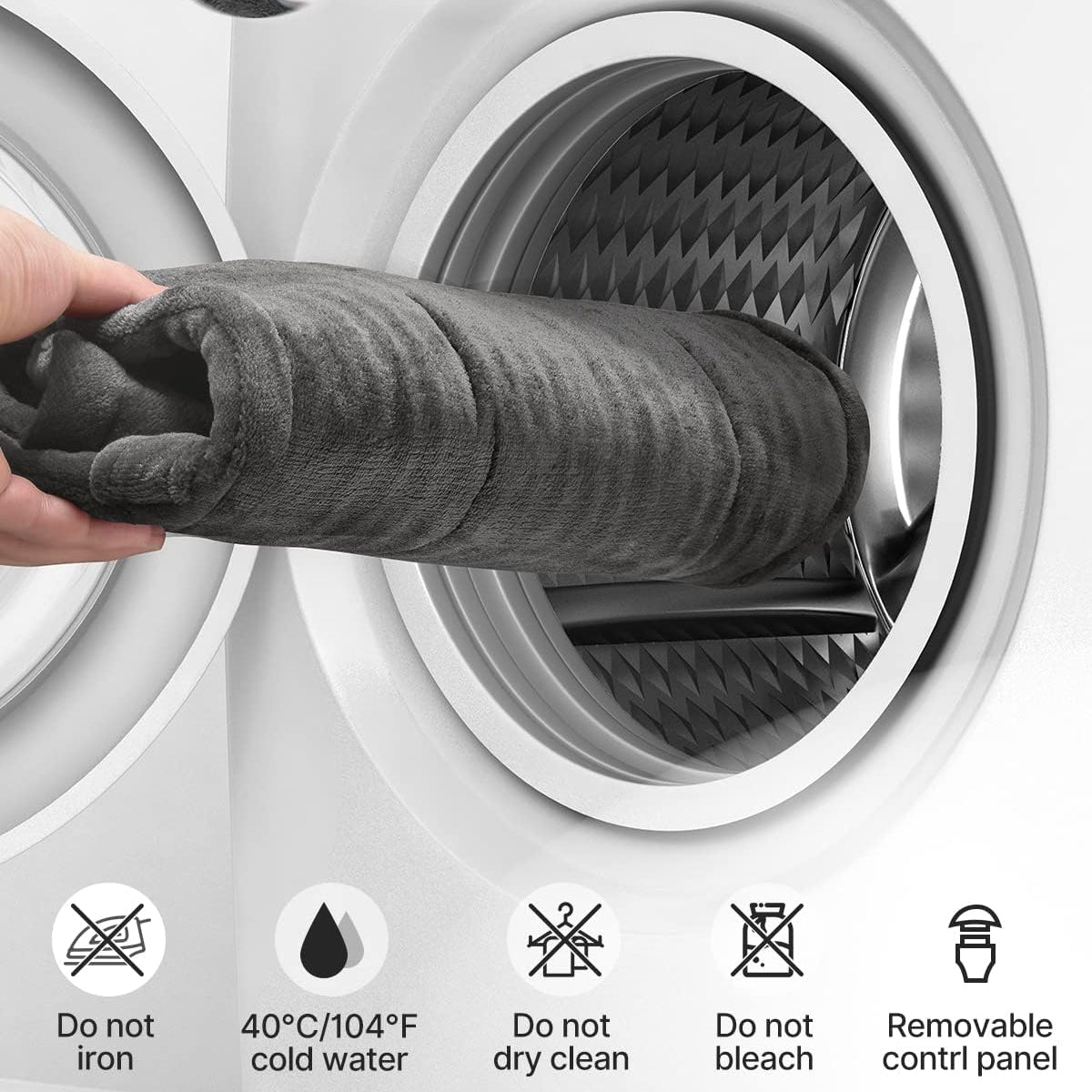 Detach the controller before cleaning. For easy upkeep, spot clean as needed, and follow the care directions for washing.